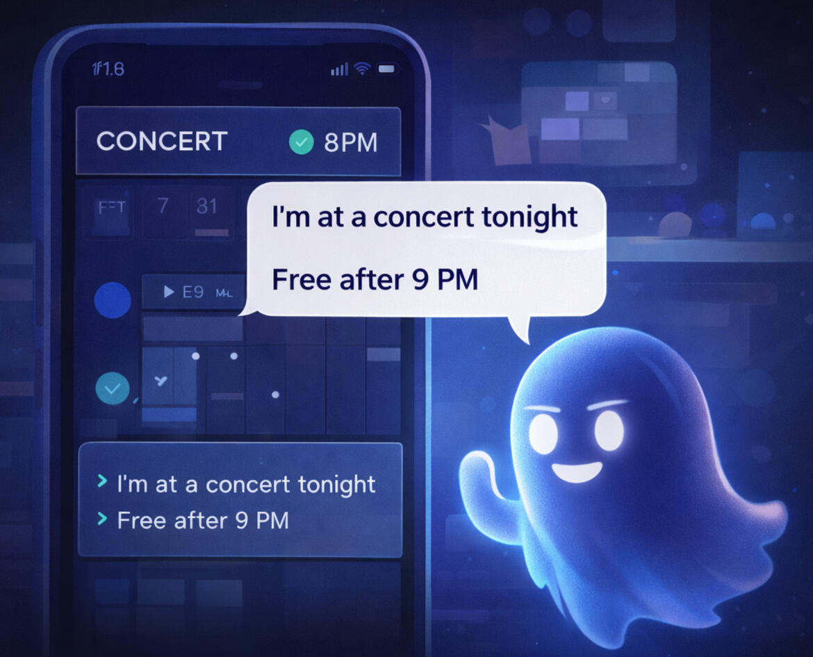 At a concert Friday night? Your ghost can tell friends you're busy and recommend times you're free based on your calendar.